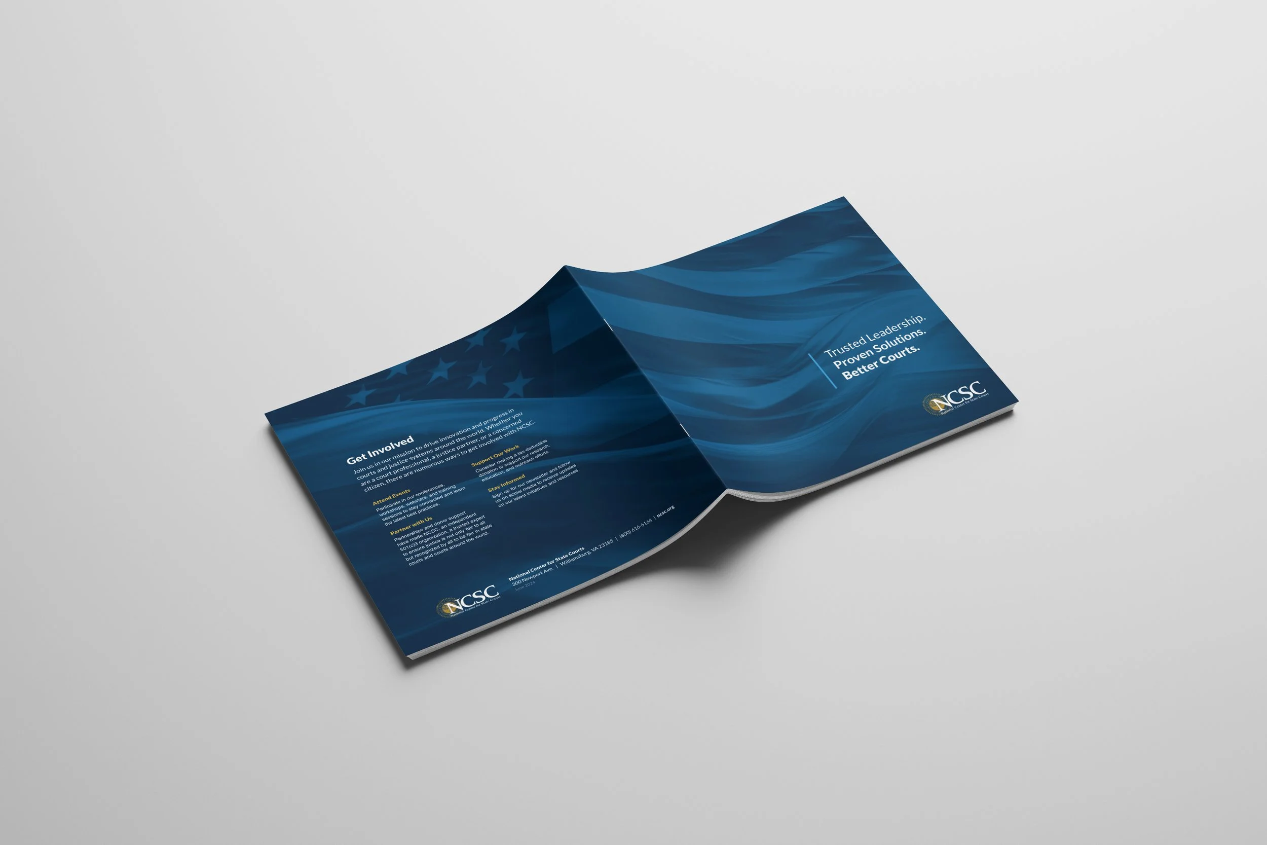 NCSC needed an update for the organizational brochure to reflect its evolving brand. A square brochure was created to stand out from previous materials and to begin introducing new brand colors and visuals. Content was written so that the brochure would not quickly become out of date.